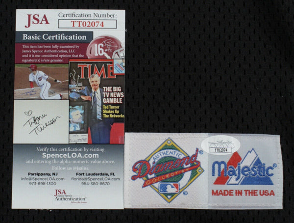 Custom on-field style Majestic jersey. Everything is sewn on, size Large. Hand-signed by Roberto Alomar (Baltimore Orioles, HOF). Please see photos for more details regarding the condition of the jersey.The lot / autograph(s) includes an official James Spence Authentication (JSA) hologram and matching COA for authenticity purposes.Authentication: JSA COA
