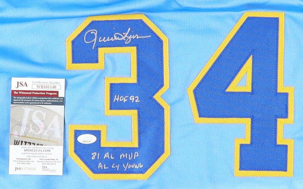 Rollie Fingers Signed Milwaukee Brewers Jersey (JSA COA) 1992 H.O.F/ 1981 AL MVP