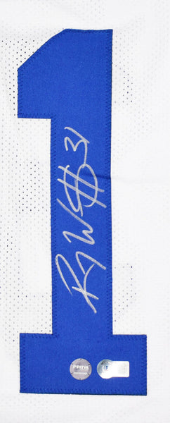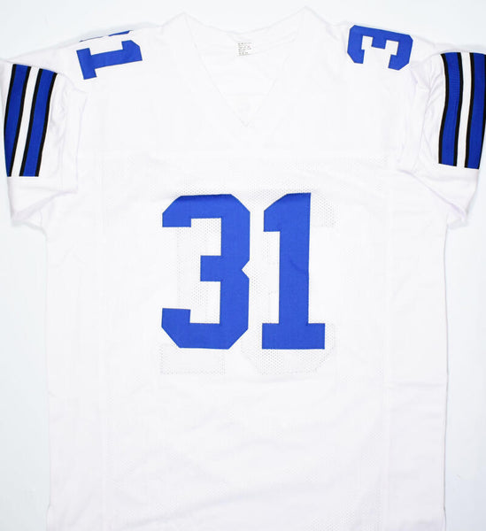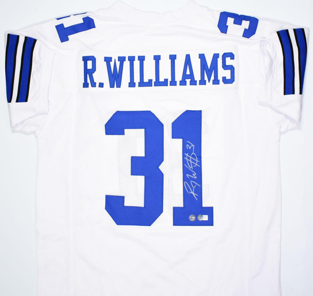 Roy Williams Autographed White Pro Style Jersey - Beckett W Hologram *Silver THIS IS NOT AN NCAA JERSEY. THIS HAS NO TAGS, NO LOGOS, NO EMBLEMS. This is a hand autographed jersey of Roy Williams. This is custom made (Non Name Brand) authentic style (Stitched Letters and Numbers). This item has a Beckett Witness Authentication, which comes with a Beckett numbered hologram and a QR code for verification. You can view this item on the Beckett website and it shows when and where the item was signed. It was signed either at a public autograph appearance or a private signing. This is a stock photo of the item. Although you may not receive this exact item, the item you receive is virtually identical and brand new in great shape. Jersey size is XL.