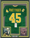 FRAMED Autographed/Signed RUDY RUETTIGER 33x42 ND Green Jersey JSA COA
