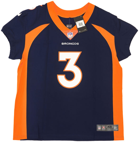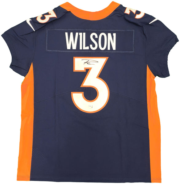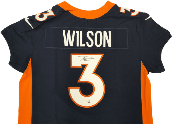 This is a Blue Nike Denver Broncos Elite Jersey that has been hand signed by Russell Wilson. This jersey is Size 48. This item has been certified authentic by Fanatics and comes with their tamper-proof sticker.
