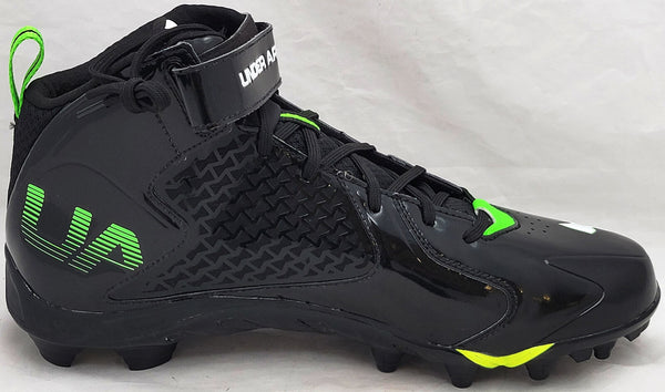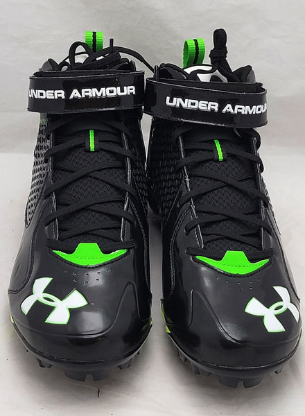 This is a Black & Green Under Armor Spine Fierce Cleats that has been hand signed by Russell Wilson. This pair of cleats are size 12.5. This pair of cleats come with the original Under Armor shoe box. This item has the official tamper-proof Russell Wilson hologram and matching certificate of authenticity.