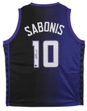 This Autographed Purple & Black Two Tone Pro Style Jersey has been Personally Signed by Domantas Sabonis of the Sacramento Kings. This item is 100% Authentic to include a hologram by Beckett Authentication Services. This item will come with an affixed Beckett Authentication Services (BAS) authentication sticker, which includes a scannable QR code to verify authenticity. Please note that Beckett no longer provides serial-numbered COA cards, and the attached BAS sticker will serve as the complete authentication for this item. This is a BAS Witnessed Protection Program item which means a Beckett Authentication Service representative was present when this item was being signed. We have multiples of this same item. While the photographs are representative of this item, the size, placement and strength of the signature may vary. Each item is hand signed, therefore, each autograph is unique. This is a X-Large sized, non-branded, custom-stitched Jersey.
