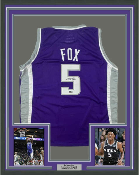 FRAMED Autographed/Signed DE'AARON FOX 33x42 Sacramento Purple Jersey BAS COA