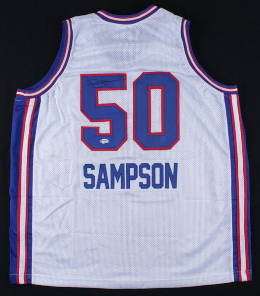 Custom on-court style jersey. Everything is sewn on, size XL. Has been hand-signed by Ralph Sampson (HOF). Please note, hologram is slightly worn and there are glue stains on the reverse numbers.The lot / autograph(s) includes an official PSA/DNA hologram and matching COA for authenticity purposes.Authentication: PSA COA