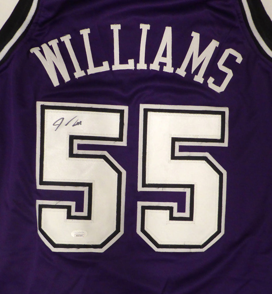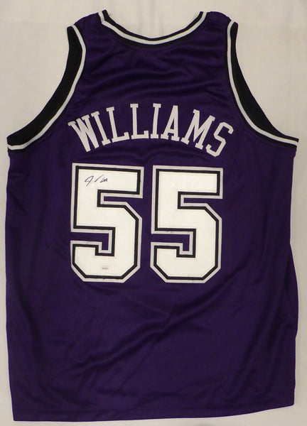 This is a Purple Jersey that has been hand signed by Jason Williams. This is a custom jersey with no name brand. The approximate size is XL. It has nice sewn in name and numbers. This item has been certified authentic by JSA and comes with their tamper-proof sticker and matching certificate of authenticity.