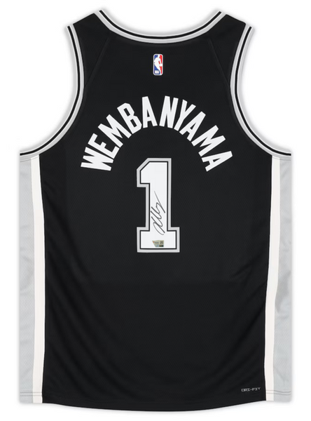 This Nike brand Icon Edition black swingman jersey has been personally hand-signed by Victor Wembanyama. It is officially licensed by the National Basketball Association and comes with an individually numbered, tamper-evident hologram from Fanatics Authentic. To ensure authenticity, the hologram can be reviewed online. This process helps to ensure that the product purchased is authentic and eliminates any possibility of duplication or fraud.Made in the USAPersonally Autographed by Victor WembanyamaFanatics Authentic Presented by Mounted MemoriesIncludes tamper-evident hologram to ensure authenticityOfficially licensed This product is guaranteed authentic and includes a Fanatics Certificate of Authenticity and an accompanying tamper-evident Fanatics Hologram.