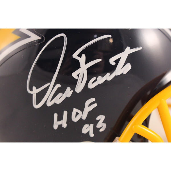 The number in the listing title is just an inventory sku for our records and is not the authentication number. This is a stock photo, unless otherwise noted. This is a San Diego Chargers Throwback 1974-1987 VSR4 Mini Helmet that was personally autographed by Dan Fouts, includes "HOF" inscription. Includes a certificate of authenticity from Beckett Authentication Services (BAS) and Denver Autographs.FREE SHIPPING within the USA on orders over $10!