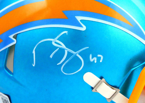 Darren Sproles Autographed Chargers Flash Speed Mini Helmet- Beckett W Hologram *White This is a Darren Sproles of the San Diego Chargers hand autographed Riddell Football Flash Speed Mini Helmet. This item has a Beckett Witnessed Authentication, which comes with a numbered hologram and a QR code for verification. You can view this item on the Beckett website and it shows when and where the item was signed. It was signed either at a public autograph appearance or a private signing. This is a stock photo of the item. Although you may not receive this exact item, the item you receive is virtually identical, brand new, and in great shape.