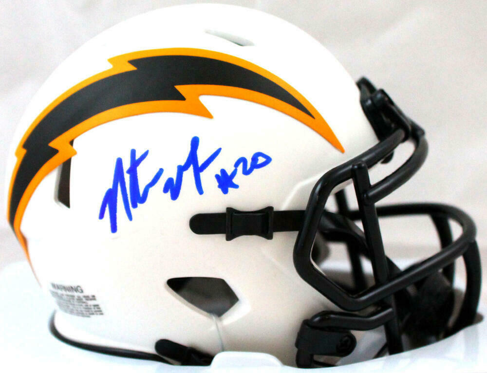 Natrone Means Autographed San Diego Chargers Lunar Speed Mini Helmet-Prova *Blue This is a hand autographed Mini Helmet of Natrone Means of the San Diego Chargers. This is a Riddell Football Lunar Speed Mini Helmet. This item has a Prova Authentication, which comes with a Prova numbered sticker. You can view this item on the Prova website, it shows when and where the item was signed. It was signed either at a public autograph appearance or a private signing. This is a stock photo of the item. Although you may not receive this exact item, the item you receive is virtually identical and brand new in great shape.