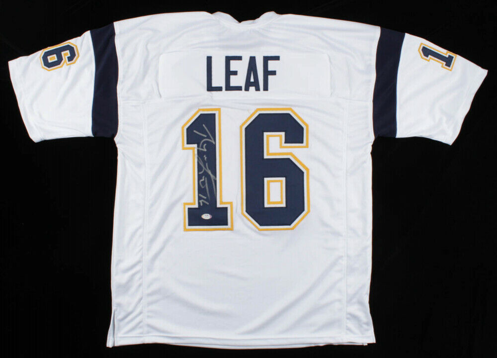 Custom on-field style jersey. Everything sewn on, size XL. Hand-signed by Ryan Leaf.The lot / autograph(s) includes an official PSA/DNA hologram and matching COA for authenticity purposes. The signing of this item was witnessed by PSA.Authentication: PSA COA