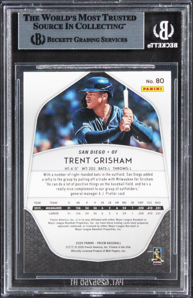 This Autographed 2020 Panini Prizm #80 Card has been Personally Signed by Trent Grisham of the San Diego Padres. This item is 100% Authentic, it comes slabbed and authenticated by Beckett Authentication Services. The authenticity can be verified on Beckett Authentication Services website.