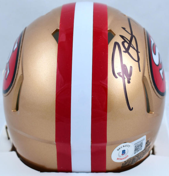 Deion Sanders Autographed San Francisco 49ers 64-95 Speed Mini Helmet- Beckett W Hologram *Black This is a Deion Sanders of the San Francisco 49ers hand autographed Riddell 1964-1995 Speed Mini Helmet. This item has a Beckett Witnessed Authentication, which comes with a numbered sticker hologram and a QR code for verification. You can view this item on the Beckett Authentication website, it shows when and where the item was signed. It was signed either at a public autograph appearance or a private signing. This is a stock photo of the item. Although you may not receive this exact item, the item you receive is virtually identical, brand new, and in great shape.
