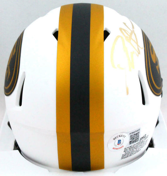 Deion Sanders Signed San Francisco 49ers Lunar Mini Helmet- Beckett W Holo *Gold This is a Deion Sanders of the San Francisco 49ers hand autographed Riddell Lunar Speed Mini Helmet. This item has a Beckett Witnessed Authentication, which comes with a numbered hologram and a generic Beckett Certificate of Authenticity. You can view this item on the Beckett Authentication website, it shows when and where the item was signed. It was signed either at a public autograph appearance or a private signing. This is a stock photo of the item. Although you may not receive this exact item, the item you receive is virtually identical, brand new, and in great shape.