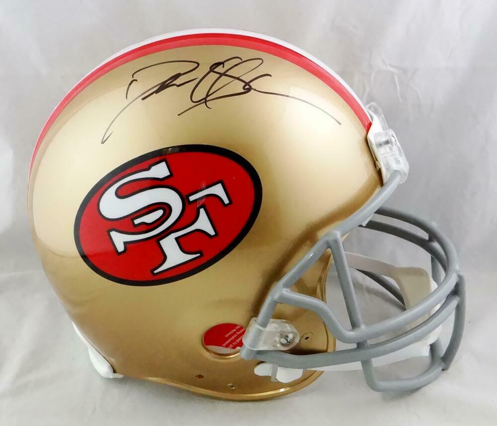 Deion Sanders Autographed San Fracisco 49ers F/S TB Authentic Helmet - Beckett W Auth *Black This is a hand autograph of Deion Sanders of the San Francisco 49ers on a Riddell Football Full Size Throwback Authentic Helmet. This item has a Beckett Witnessed Authentication, which comes with a Beckett numbered and a matching Beckett Certificate of Authenticity. You can view this item on the Beckett Authentication website, it shows when and where the item was signed. It was signed either at a public autograph appearance or a private signing. This is a stock photo of the item. Although you may not receive this exact item, the item you receive is virtually identical and brand new in great shape.