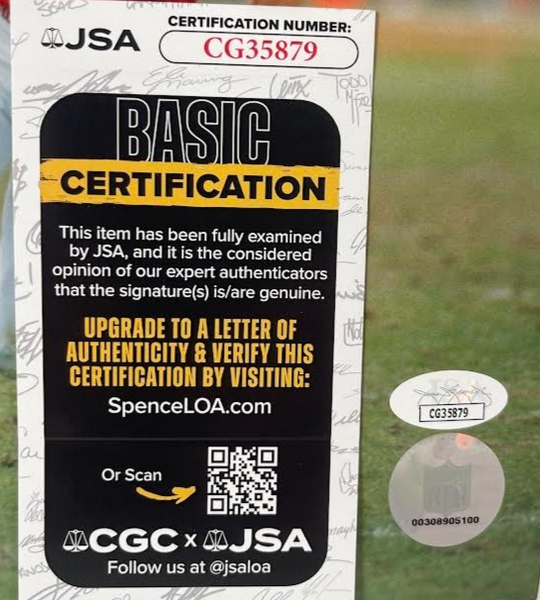 Add this authentic Ed McCaffrey autographed 8x10 photo to your San Francisco 49ers collection. This high-quality photograph features the former 49ers wide receiver's signature and comes with a JSA (James Spence Authentication) Certificate of Authenticity, guaranteeing its legitimacy for collectors and football fans. Authentic Ed McCaffrey autograph with JSA Certificate of Authenticity High-quality 8x10 inch professional photograph Features the former San Francisco 49ers wide receiver JSA COA provides third-party authentication guarantee Perfect for 49ers fans and NFL memorabilia collectors