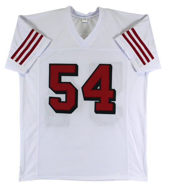 This Autographed w/ Dropshadow White Pro Style Jersey has been Personally Signed by Fred Warner of the San Francisco 49ers. This item may come with an affixed Beckett Authentication Services (BAS) authentication sticker, which includes a scannable QR code to verify authenticity. Please note that Beckett no longer provides serial-numbered COA cards, and the attached BAS sticker will serve as the complete authentication for this item. We conducted an autograph signing with Fred Warner where multiples of the same item were signed. While the photographs are representative of this item, the size, placement and strength of the signature may vary. Each item is hand signed, therefore, each autograph is unique. This item can be verified through BAS. This is a X-Large sized, non-branded, custom-stitched Jersey.