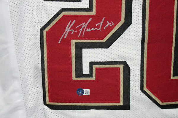 Garrison Hearst Autographed/Signed Pro Style White XL Jersey Beckett 35513 The number in the listing title is just an inventory sku for our records and is not the authentication number. The item pictured is a stock photo unless otherwise noted. This is a custom pro style white XL jersey with sewn on name and numbers that was personally autographed by Garrison Hearst. Includes a certificate of authenticity from Beckett Authentication Services (BAS) and Denver Autographs.