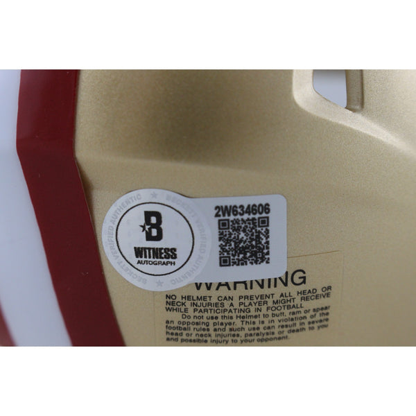 The number in the listing title is just an inventory sku for our records and is not the authentication number. The item pictured is a stock photo unless otherwise noted. This is a San Francsico 49ers Speed Mini Helmet that was personally autographed by George Kittle includes "The Peoples TE" inscription. Includes a certificate of authenticity from Beckett Authentication Services (BAS) and Denver Autographs.