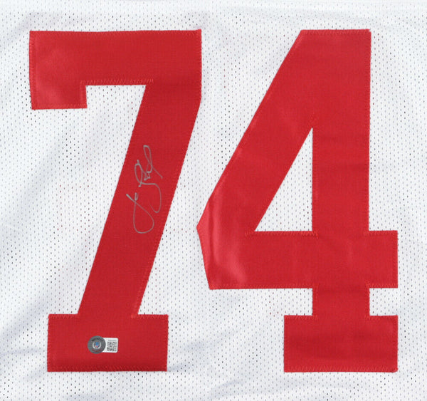 Custom on-field style jersey. Everything is sewn on, size XL. Hand-signed by Joe Staley.The lot / autograph(s) includes an official Beckett Authentication Services serially-numbered hologram for authenticity purposes. The signing of this item was witnessed by Beckett.Authentication: Beckett Hologram