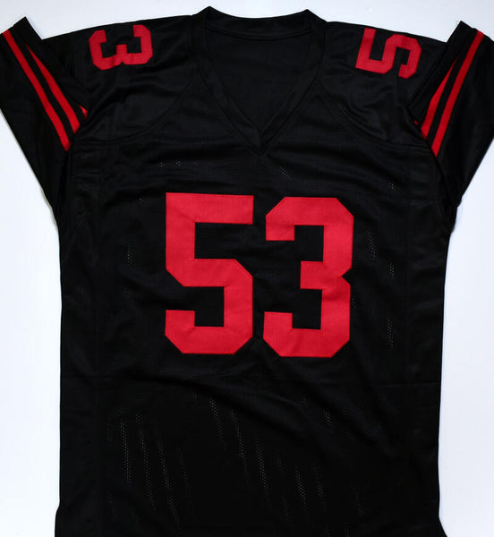 NaVorro Bowman Autographed Black Pro Style Jersey- Beckett W Hologram *Black THIS IS NOT AN NFL JERSEY. THIS HAS NO TAGS, NO LOGOS, NO EMBLEMS. This is a Hand Autographed Jersey of NaVorro Bowman. This is Custom Made (Non Name Brand) Authentic Style (Stitched Letters and Numbers). This item has a Beckett Witnessed Authentication, which Comes with a Beckett #'ed hologram and a QR code for verification. You can view this item on the Beckett website. It was signed either at a public autograph appearance or a Private Signing. This is a stock photo of the item. Although you may not receive this exact item, the item you receive is virtually identical and brand new in great shape. Jersey size is XL.