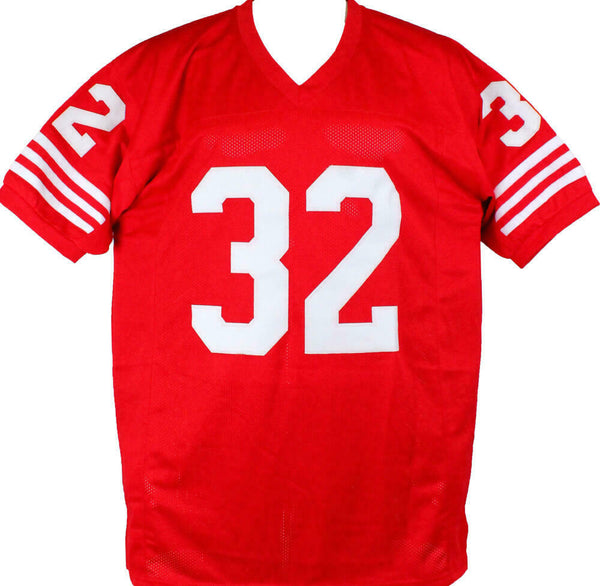 OJ Simpson Autographed Red Pro Style Jersey- JSA W *Black THIS IS NOT AN NFL JERSEY. THIS HAS NO TAGS, NO LOGOS, NO EMBLEMS. This is an OJ Simpson of the San Francisco 49ers hand autographed custom made (non name brand) authentic style (stitched letters and numbers) jersey inscribed with "HOF". This item has a James Spence Witnessed Authentication, which comes with a JSA numbered sticker and a matching Certificate of Authenticity. You can view this item on the JSA Authentication website and it shows when and where the item was signed. It was signed either at a public autograph appearance or a private signing. This is a stock photo of the item. Although you may not receive this exact item, the item you receive is virtually identical, brand new, and in great shape. Jersey size is XL.