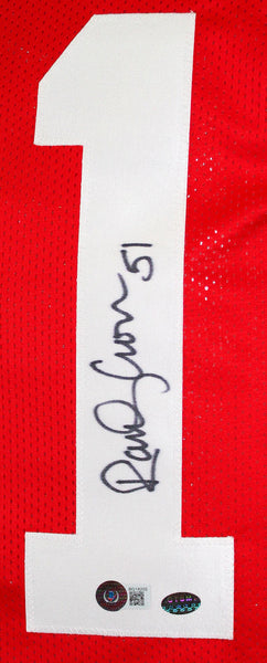 Randy Cross Autographed Red Pro Style Jersey-Beckett Hologram *Black THIS IS NOT AN NFL JERSEY. THIS HAS NO TAGS, NO LOGOS, NO EMBLEMS. This is a Randy Cross of the San Francisco 49ers hand autographed custom made (Non Name Brand) authentic style (Stitched Letters and Numbers) jersey. This item has a Beckett Authentication, which comes with a numbered hologram and a QR code for verification. You can view this item on the Beckett website. It was signed either at a public autograph appearance or a private signing. This is a stock photo of the item. Although you may not receive this exact item, the item you receive is virtually identical, brand new, and in great shape. Jersey size is XL.