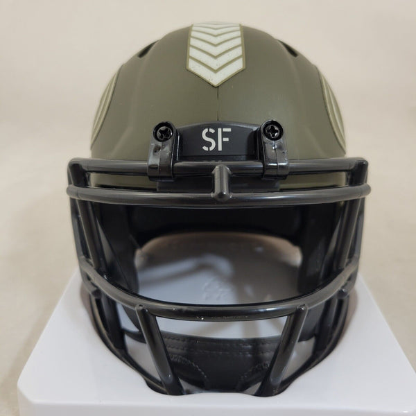 RICKY PEARSALL AUTOGRAPHED SAN FRANCISCO 49ERS SALUTE TO SERVICE (STS) SPEED MINI HELMET WITH BECKETT QR HOLOTHIS MEANS THE MINI HELMET WAS SIGNED WITH A BECKETT REPRESENTATIVE PRESENT SO YOU CAN BE 100% CERTAIN ITS THE REAL THING.