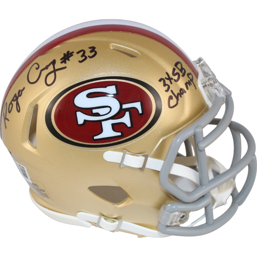 The number in the listing title is just an inventory sku for our records and is not the authentication number. The item pictured is a stock photo unless otherwise noted. This is a San Francisco 49ers Mini Helmet that was personally autographed by Roger Craig includes "3x SB Champ" inscription. Includes a certificate of authenticity from Beckett Authentication Services (BAS) and Denver Autographs.FREE SHIPPING within the USA on orders over $10!