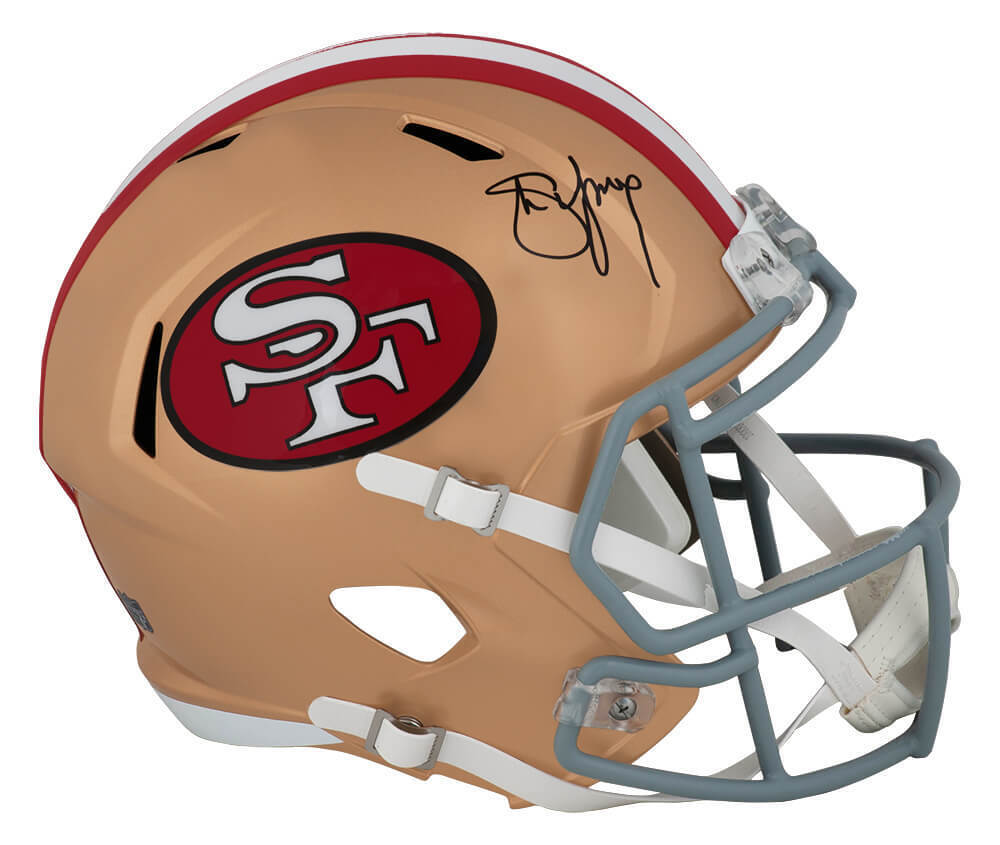 Steve Young signed San Francisco 49ers throwback Riddell full size speed replica helmet. Item comes with a Schwartz Sports Memorabilia tamper-proof numbered hologram and Certificate of Authenticity which can be verified online.