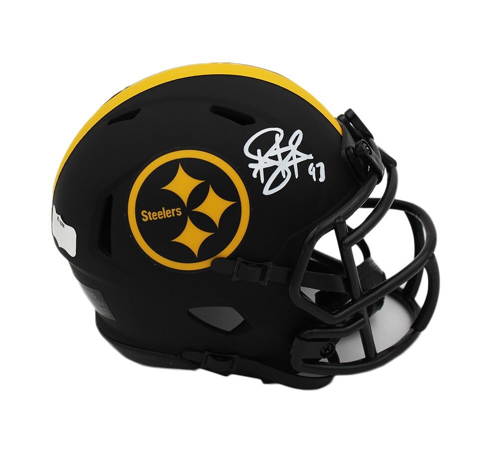 A Pittsburgh Steelers Speed Eclipse NFL Mini Helmet hand signed by Troy Polamalu. The item and signature are in excellent condition. Troy was drafted into the NFL in 2003, Round:1 and Pick:16. Troy 2xSuper Bowl champion (XL,XLIII). Troy is NFL defensive Player of the Year (2010). Troy 4xFirst-team All-Pro (2005,2008,2010,2011). Troy 2xSecond-team All-Pro (2004,2007). Troy 8xPro Bowl (2004-2008,2010,2011,2013). Troy is NFL 2000s All-Decade Team. AUTHENTICATION: The item is accompanied by a Certificate of Authenticity - Serial Numbered and Databased Hologram - Picture of Troy from the signing