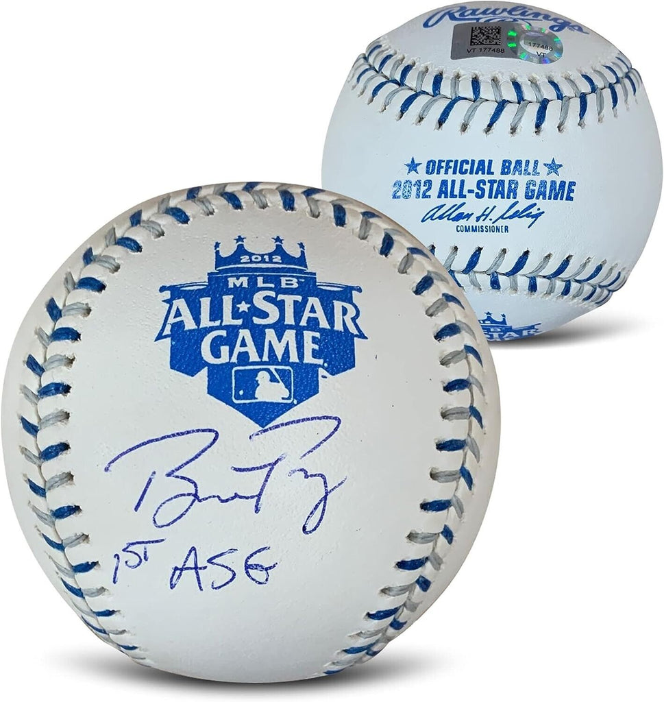 Buster Posey has autographed this 2012 All Star Game baseball (his 1st All Star Game) and written 1st ASG. Autograph and inscription has been authenticated by MLB. Comes with their unique numbered hologram verified on their site. What that means is a representative from MLB was present for the signing and witnessed him signing your item. Most sought after authenticity for baseball autographs. A display case is also included.Stock image.