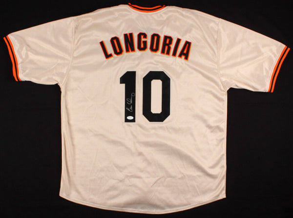 Custom on-field style jersey. Everything is sewn on, size XL. Hand-signed in silver paint pen by Evan Longoria. The lot / autograph(s) includes an official James Spence Authentication (JSA) hologram and matching COA for authenticity purposes.Authentication: JSA COA