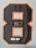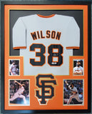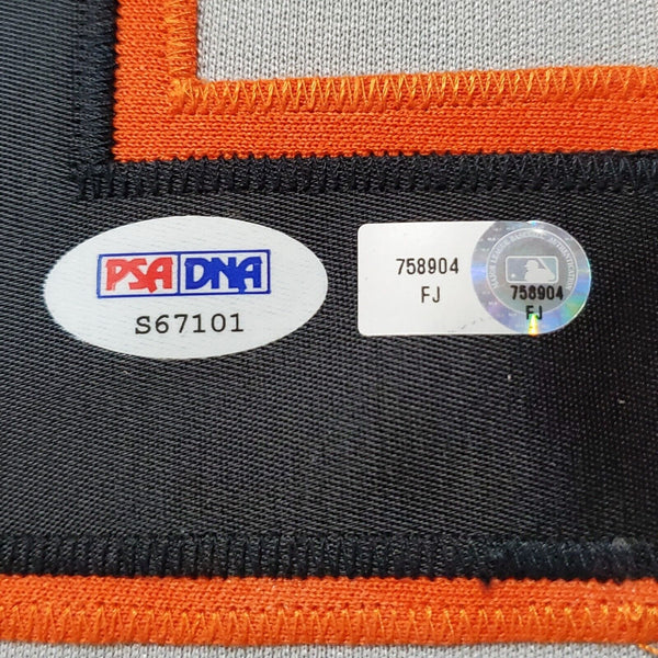 Custom Framed Brian Wilson hand signed San Francisco Giants style custom jersey.PSA/DNA Hologram (#S67101)MLB Hologram (#758904 FJ)The authentication is from PSA/DNA. This signature is authenticated by a representative of PSA/DNA! 100% AUTHENTIC!!! The jersey has fully stitched numbers on the front and back. It is a great item and a must for all great sports fans!This item is professionally framed, it measures 32"x40" inside , 42"x34" outside , using UV protective Acrylic glass for safe keeping and safe transport, team color matting, black moulding and hanging hooks on the back. All additional items in frame seen in pictures included. 100% ready to hang in your fan cave.
