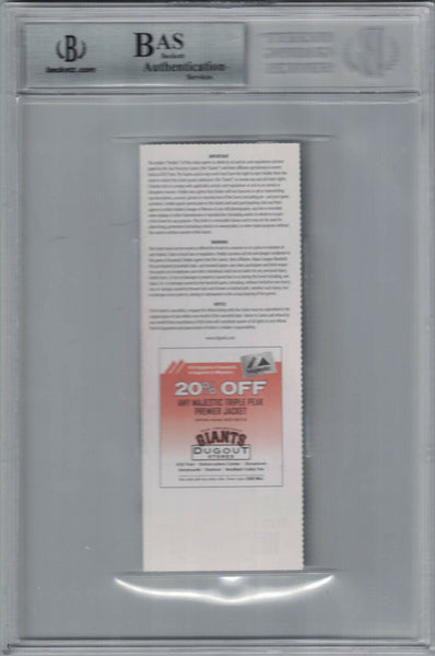 Madison Bumgarner Signed San Francisco Giants Ticket 1st MLB HR BAS Slab 25228 This is an official ticket from June 12th 2012 between the San Francisco Giants and Houston Astros that was personally autographed by Madison Bumgarner with 1st MLB HR inscription. This is the exact item that you will receive so please see scans for condition. This has been slabbed by Beckett Grading Services (BAS) and includes a certificate of authenticity from Denver Autographs.