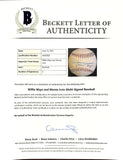 Featured is a Willie Mays & Monte Irvin dual signed baseball. This baseball was hand signed by Willie Mays & Monte Irvin and has been authenticated by Beckett authentication services. Included with the baseball is Beckett hologram and letter of authenticity. This item would make a great addition to any sports memorabilia collection!.. SPECIFICATIONS Autographed By: Willie Mays Team: San Francisco Giants Sport: Baseball Authentication: Beckett Grading Services