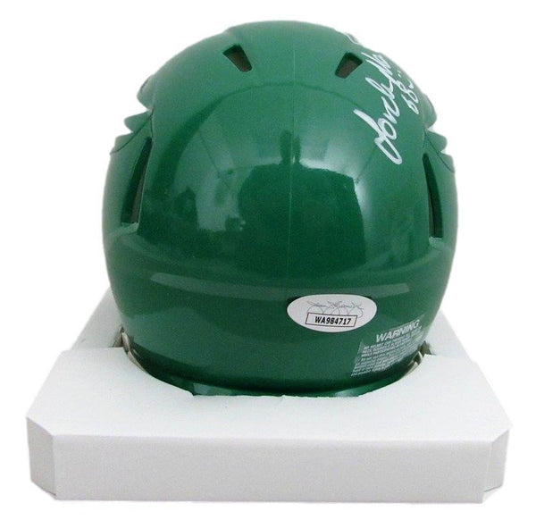 Jordan Mailata Autographed Mini Kelly Green Football Helmet Philadelphia Eagles. This helmet is authenticated by JSA and includes their tamper-proof sticker and Certificate of Authenticity.