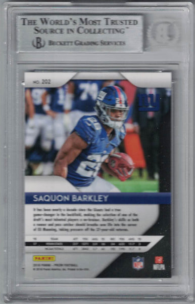 Saquon Barkley New York Giants 2018 Panini Prizm Trading Card BAS Slab 29562 The number in the listing title is just an inventory sku for our records and is not the authentication number. This is a 2018 Panini Prizm #202 trading card that was personally autographed by Saquon Barkley. This was slabbed by Beckett Authentication Services (BAS) includes a certificate of authenticity from Denver Autographs.