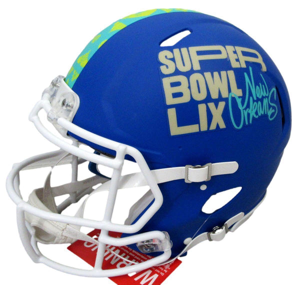 Saquon Barkley Signed/Autographed Blue Super Bowl LIX Full Size Authentic Football Helmet Philadelphia Eagles. This helmet is authenticated by PSA/DNA In-The-Presence and includes their tamper-proof hologram sticker.