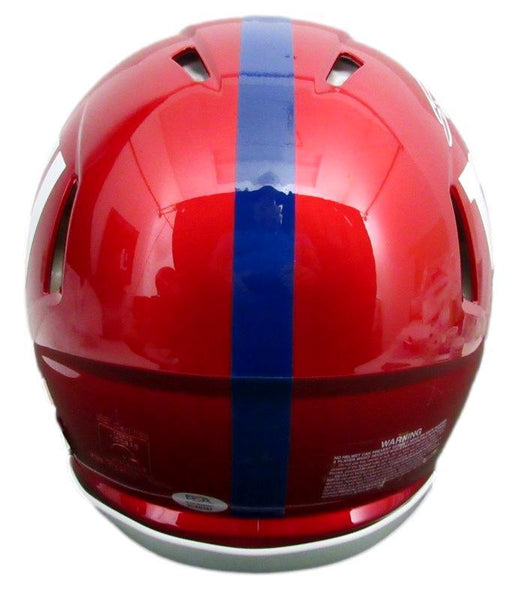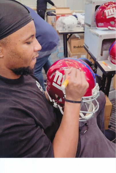 Saquon Barkley Autographed Red Flash Full Size Authentic Football Helmet New York Giants. This helmet is authenticated by PSA/DNA and includes their tamper-proof sticker and Certificate of Authenticity.