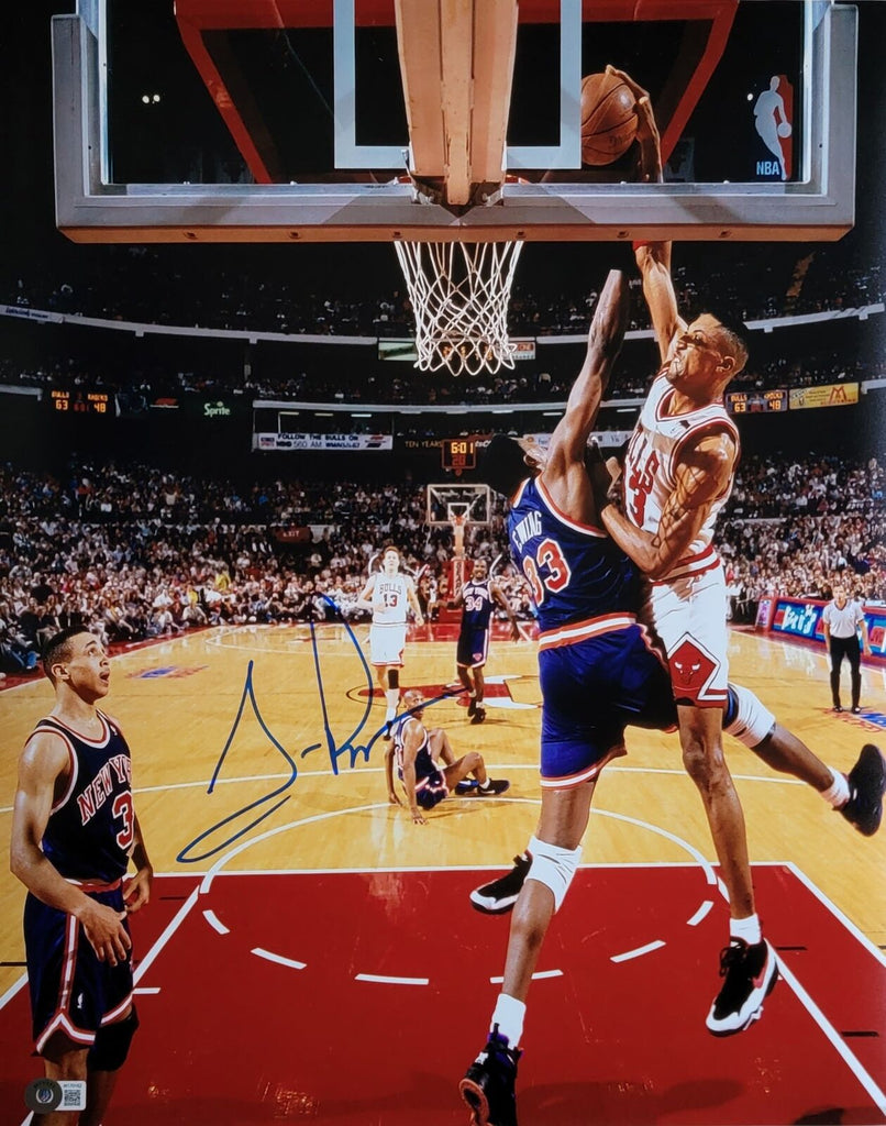Scottie Pippen Autographed Chicago Bulls Slam Dunk 16X20 Photo Beckett Witnessed