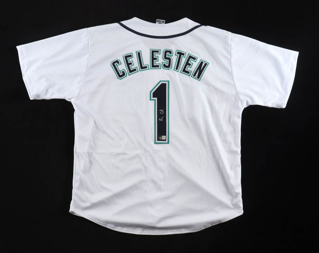 Custom on-field style jersey. Everything sewn on, size XL. Hand-signed by Felnin Celesten. Felnin Daniel Celesten (born September 15, 2005) is a Dominican professional baseball shortstop in the Seattle Mariners organization. His nickname is El Fenix.The autograph includes an official Beckett Authentication Services serially numbered hologram and QR Code Card for authenticity purposes. The signing of this item was witnessed by Beckett.Authentication: Beckett Hologram & QR Code card Check out all the items in our Friendly Confines Collectibles store, Thanks for looking.