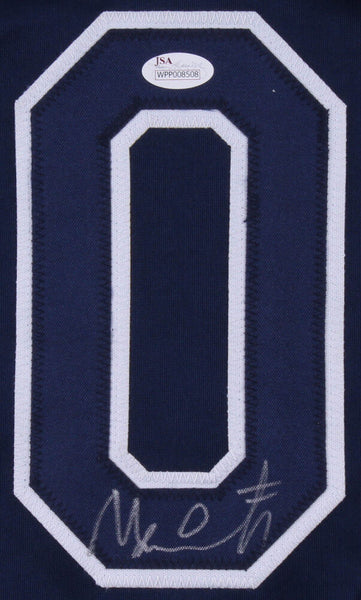 Custom on-field style jersey. Everything is sewn on, size XL. Hand-signed in silver paint pen by Mallex Smith. The lot / autograph(s) includes an official James Spence Authentication (JSA) hologram and matching COA for authenticity purposes. The signing of this item was witnessed by JSA.Authentication: JSA COA