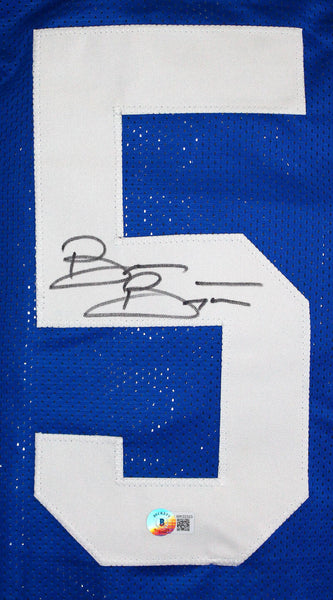 Brian Bosworth Autographed Blue Pro Style Jersey-Beckett W Hologram *Black THIS IS NOT AN NFL JERSEY. THIS HAS NO TAGS, NO LOGOS, NO EMBLEMS. This is a hand autograph of Brian Bosworth on a Custom Made (Non Name Brand) Authentic Style Jersey with stitched letters and numbers. This item has a Beckett Witnessed Authentication, which comes with a numbered hologram and a QR code for verification. You can view this item on the Beckett Authentication website. It was signed either at a public autograph appearance or a private signing. This is a stock photo of the item. Although you may not receive this exact item, the item you receive is virtually identical and brand new in great shape. Jersey size is XL.