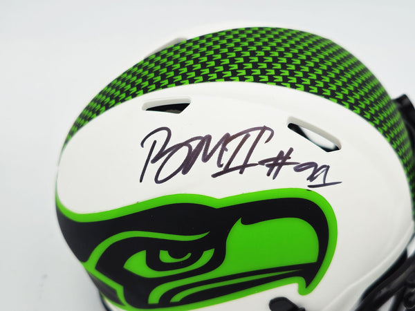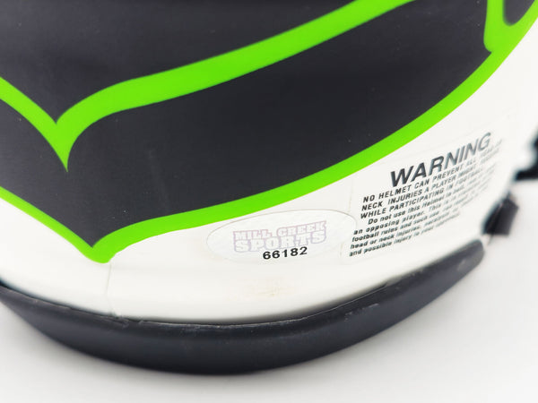 This is a Seattle Seahawks Lunar Eclipse White Speed Mini Helmet that has been hand signed by Byron Murphy II. The Eclipse helmets are delicate and may have some marks or scratches on them. This item was signed in the presence of a Mill Creek Sports representative and comes with their serial numbered hologram and matching certificate of authenticity.