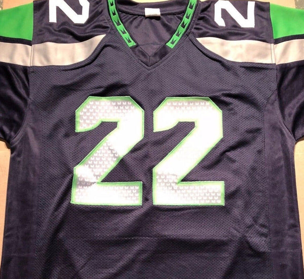 Custom on-field style jersey. Everything sewn on, size XL. Hand-signed and inscribed in silver paint pen by C.J. Prosise (Seahawks). The autograph includes an official Beckett Authentication Services serially numbered hologram and matching COA for authenticity purposes.Authentication: Beckett COA