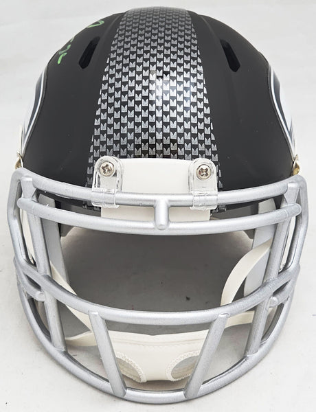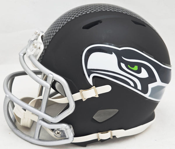 This is a Seattle Seahawks Flat Matte Black Speed Mini Helmet that has been hand signed by Chris Carson. This item has been certified authentic by Fanatics and comes with their tamper-proof sticker.