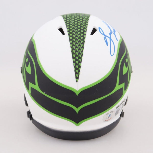 Riddell Seattle Seahawks Lunar Eclipse Alternate Speed mini helmet. Hand-signed by Drew Lock.The lot / autograph(s) includes an official Beckett Authentication Services serially numbered hologram for authenticity purposes. The signing of this item was witnessed by Beckett.Authentication: Beckett Hologram