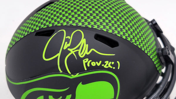 This is a Seattle Seahawks Eclipse Black Speed Mini Helmet that has been hand signed by Jim Zorn. The Eclipse helmets are delicate and may have some marks or scratches on them. This item was signed in the presence of a Mill Creek Sports representative and comes with their serial numbered hologram and matching certificate of authenticity.