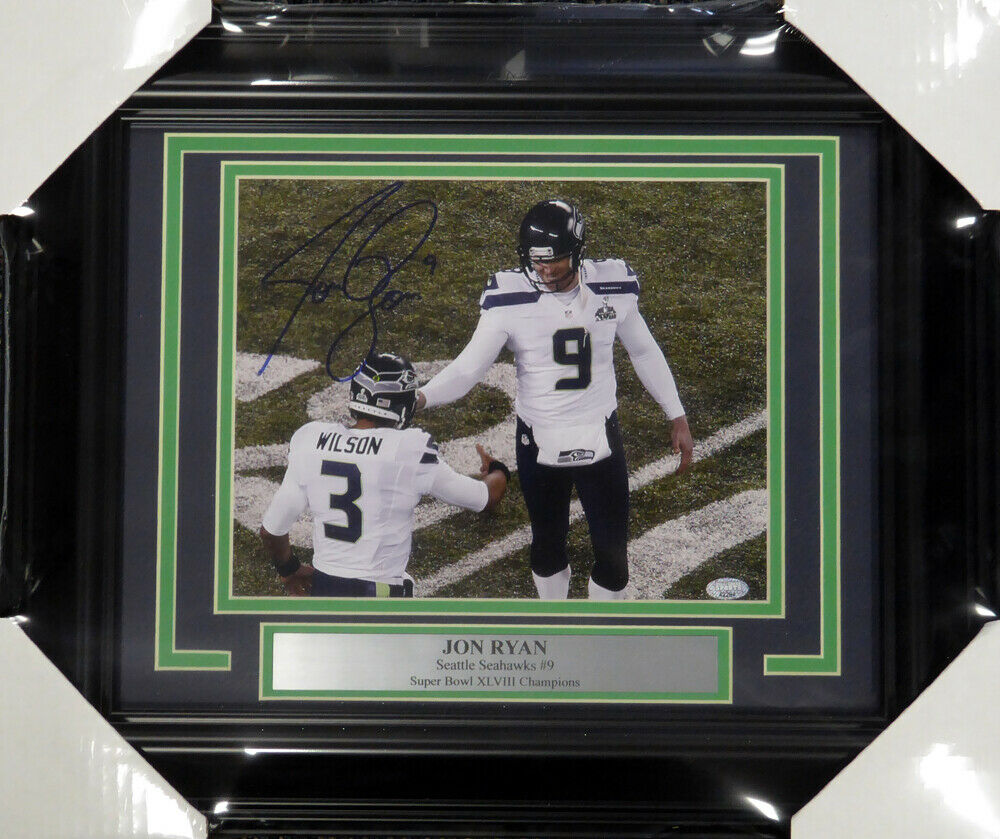 This is a framed 8x10 photo, approximately 15x18 with the frame,that has been hand signed by Jon Ryan. It comes with the tamper-proof Mill Creek Sports hologram and matching certificate of authenticity.